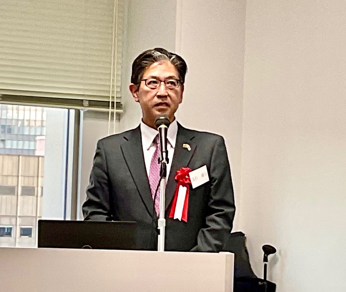 2025年12月8日(月)16時から、米州開発銀行アジア事務所に於いて、駐コロンビア日本大使歓送迎会が開催され、日本コロンビア友好協会から法人・個人合わせて30余名の会員が参加されました。寺澤辰麿協会会長の開会挨拶の後、高杉優弘前大使より帰国に当たってのご挨拶を頂きました。その後、清水亨新大使(*)より赴任に当たってのご挨拶を頂き、林渉元大使による乾杯のご発声に合わせて出席者全員で乾杯を行いました。